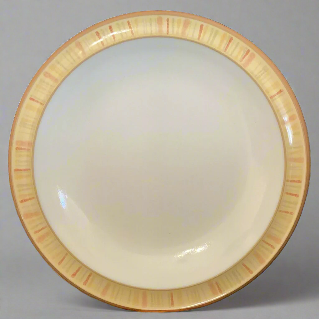 Infuse your dinnerware with a sense of cozy sophistication with these Denby Caramel Stripes bread and butter plates. This distinct and prized pattern, produced by Denby-Langley, is a modern classic that continues to charm with its warm and inviting design. It is the perfect choice for those who appreciate both contemporary style and the enduring quality of classic Denby stoneware.
