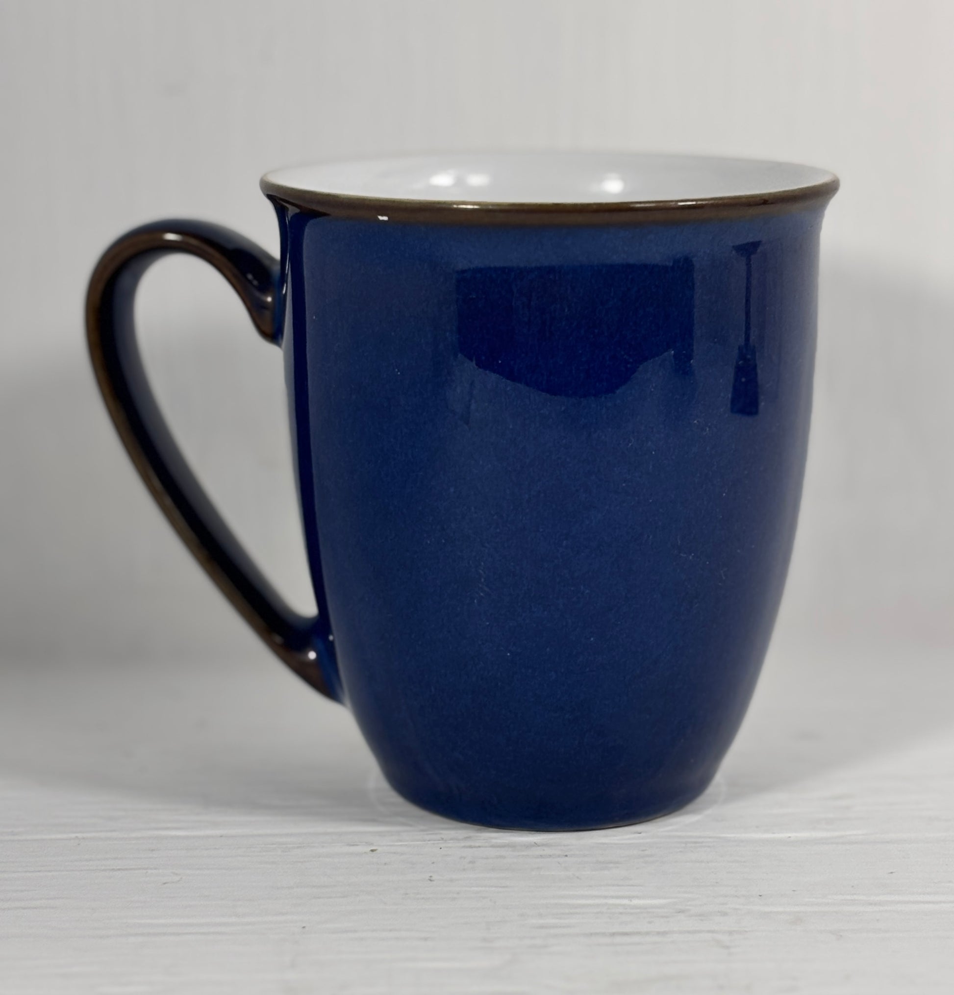 The Denby Imperial Blue pattern is a classic that has been revered for its volcanic style glaze that is striking. The stoneware build provides a substantial weight and a balance that feels truly serene in your hand. The flared shape is not only beautiful but also engineered for a secure and comfortable grip that provides an easy sip every time.