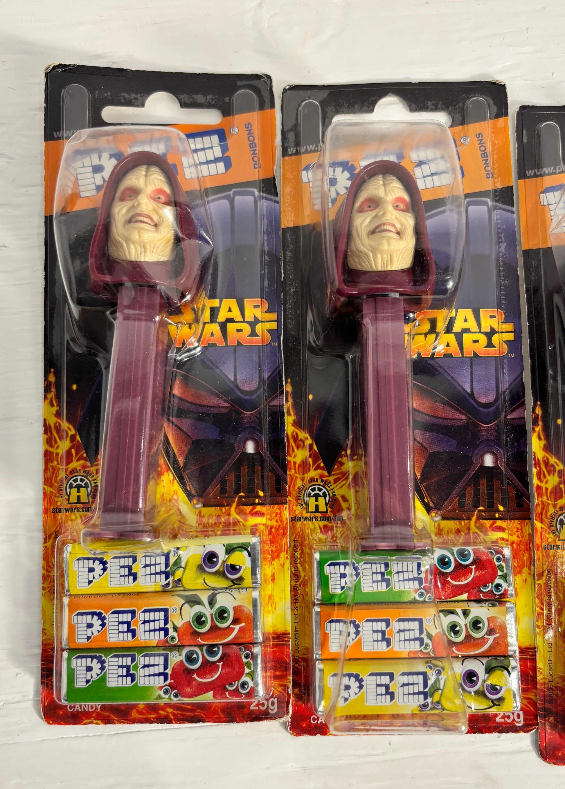 Quite arguably one of the most iconic and popular movie franchises ever is Star Wars. Now the movies can come to you in the form of these wonderful Star Wars movies Pez dispensers. New on cards and never opened, each Star Wars Pez dispenser has depictions of a character from the movies. In this lot you will receive R2D2, Death Star, and Emperor Palpatine (2). These fantastic Pez dispensers are new on card and were made in Austria by Pez International AG.