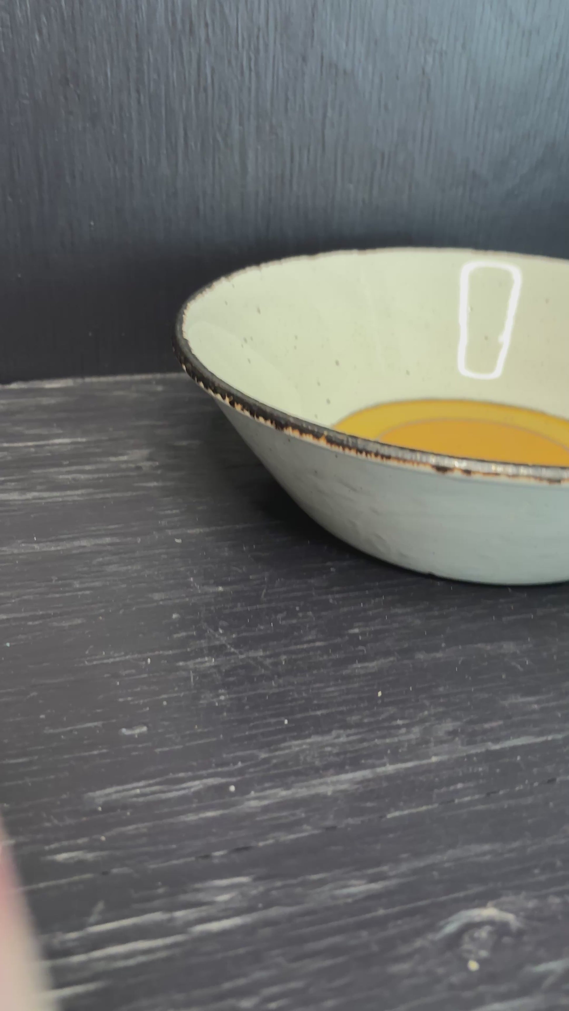 Brighten your table with the Stonehenge Midwinter Sun Serving Bowl. Made in England, this vintage stoneware bowl features a warm golden yellow and orange circle design inspired by a bright summer day. Its natural speckled glaze and bold sun motif create a look that is both cheerful and timeless that will accent your table with a wonderful dash of bright color.